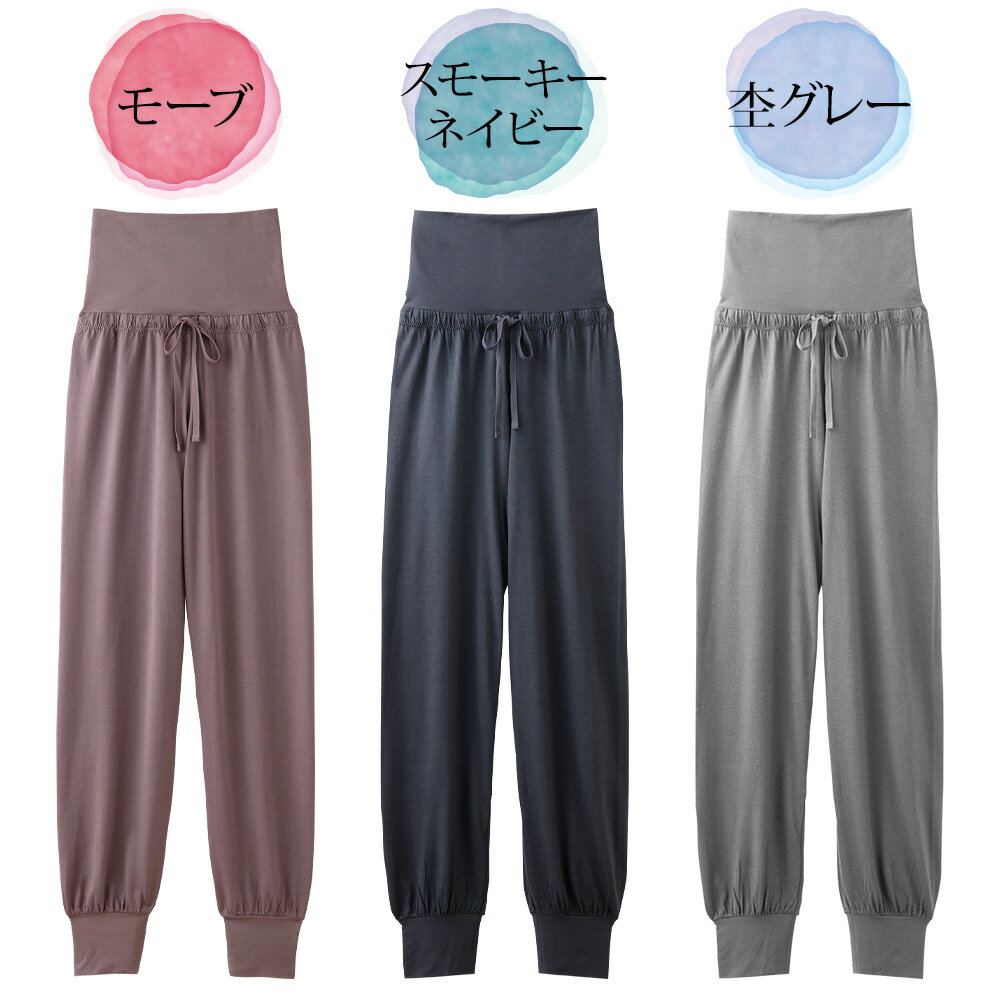【カラー】 モーブ、スモーキーネイビー、杢グレー 【サイズ】 M〜L(ワンサイズ)ウエスト64~77cm 股下76cm 【素材】 レーヨン(TAKEFU(R))70%(原料に竹を使用)、綿30% リブ部分:レーヨン(TAKEFU(R))92%(原料に竹を使用)、ポリウレタン8% 縫製糸:ポリエステル
