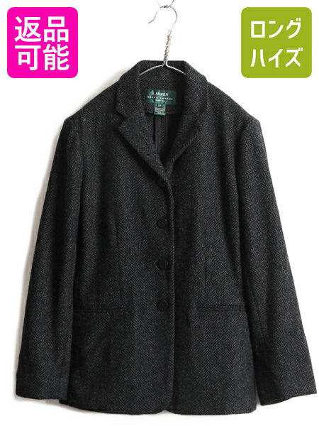 新品 デッドストック ■ ラルフローレン ヘリンボーン ツイード ウール テーラード ジャケット ( 8 レディース S M 程) POLO ポロ ブレザー| 新古品 NOS デッド RALPH LAUREN ラルフ テーラードジャケット ウールジャケット ツイードジャケット チャコールグレー ブラック