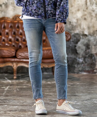 シャープなスキニーテーパードシルエットに加えダメージ・リペア加工、ペンキ散らしプリント加工をプラスしたヴィンテージ感覚溢れるデニムパンツ、スタイリングの主役になる1本です。