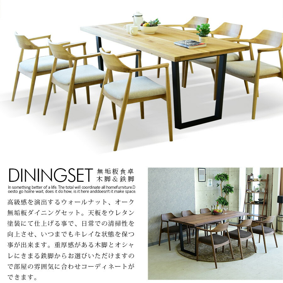 * ダイニングテーブルセット無垢 ウォールナット 6人掛け 7点セット 幅180 北欧 モダン 長方形 オーク 木製 鉄脚 ダイニングテーブル ダイニングチェアー 6人用 ミッドセンチュリー