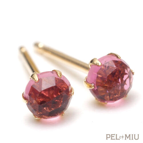 【PEL et MIU】◆セカンドピアス◆ ピンクトルマリン ローズカット 《直径約4mm》 K18 18金 天然石ピアス 軸太 0.9mm つけっぱなし スタッドピアス made in japan ペル エ ミュウ A.UN jewelry